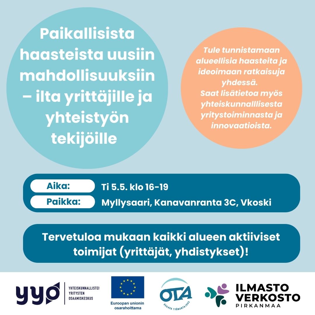 Työpajan järjestää yhdessä OTA-hanke, Yhteiskunnallisten yritysten osaamiskeskus ja Pirkanmaan ilmastoverkosto.